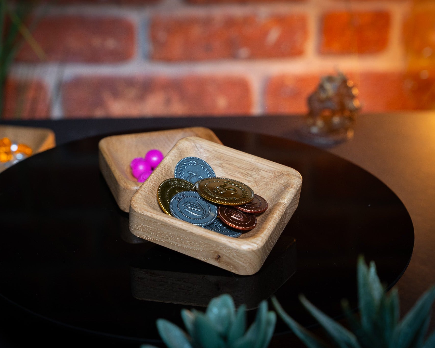No.1 ist unsere kleinste und damit am flexibelsten einsetzbare Tokenschale. Mit 75x75x20mm passt sie überall hin und kann natürlich beliebig mit unseren anderen Sortierschalen kombiniert werden.