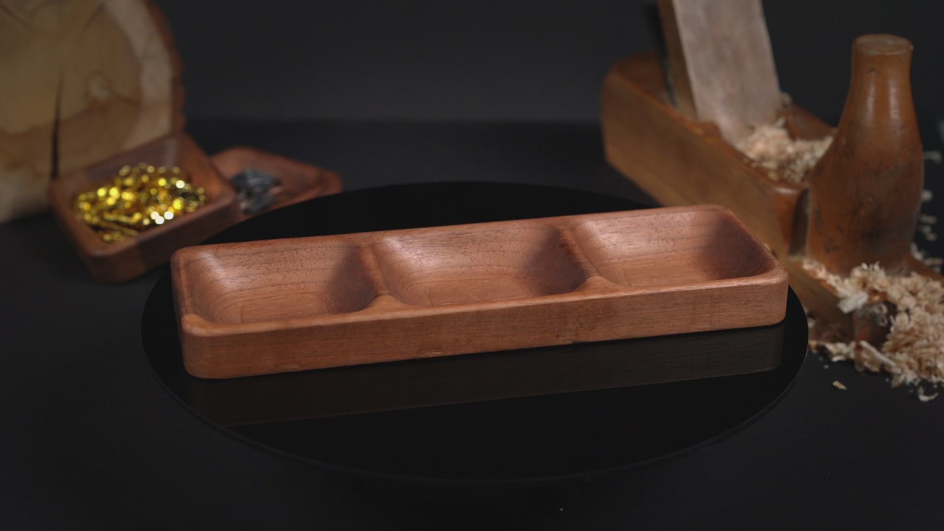 Wie der Name vermuten lässt, hat unsere große Schale (225x75x20mm) drei einzelne Fächer und eignet sich hervorragend als Basis für weitere Module.